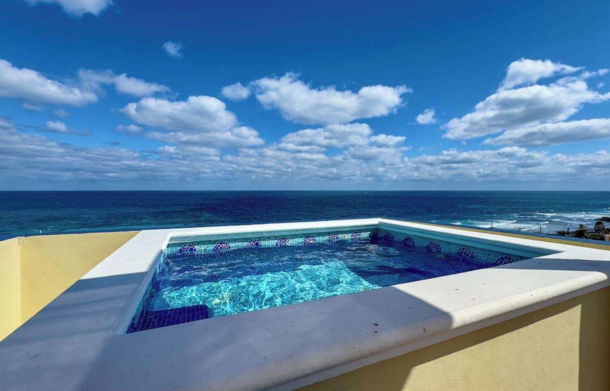 Dos atractivas piscinas, incluida una piscina en la azotea y una terraza con espectaculares vistas de 360 grados de la isla y el océano.
