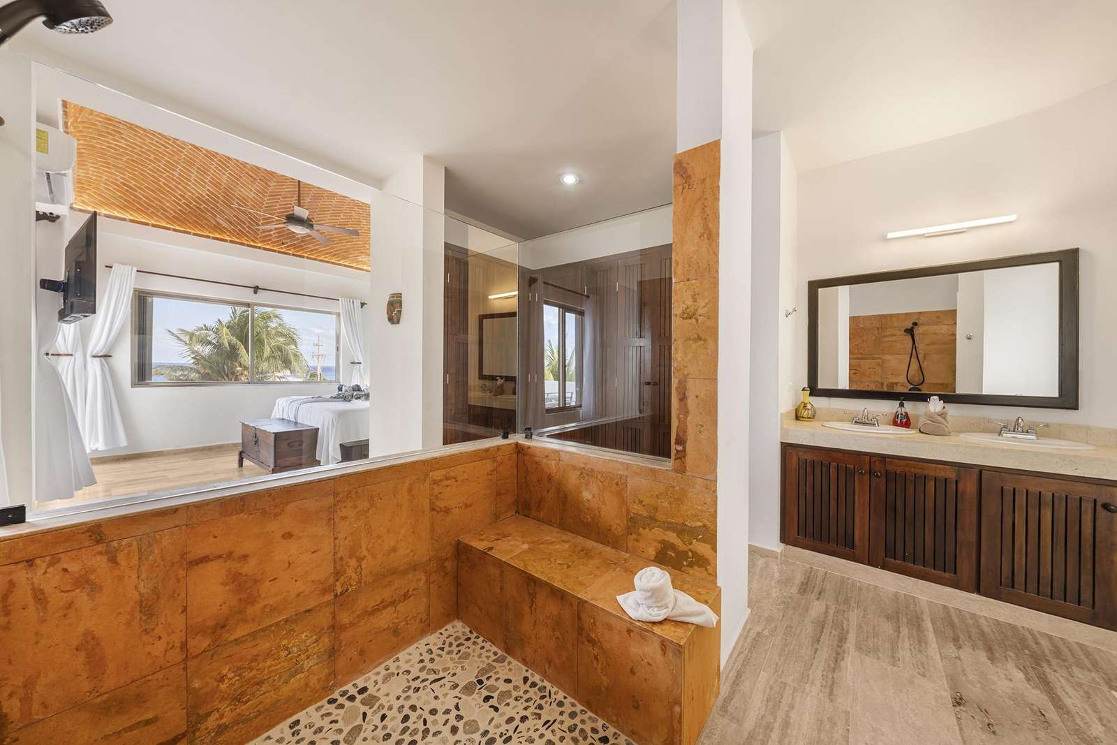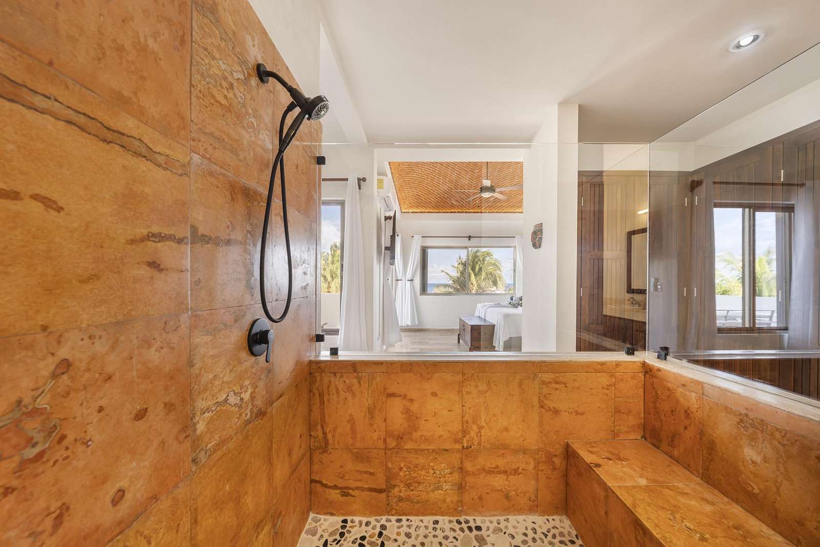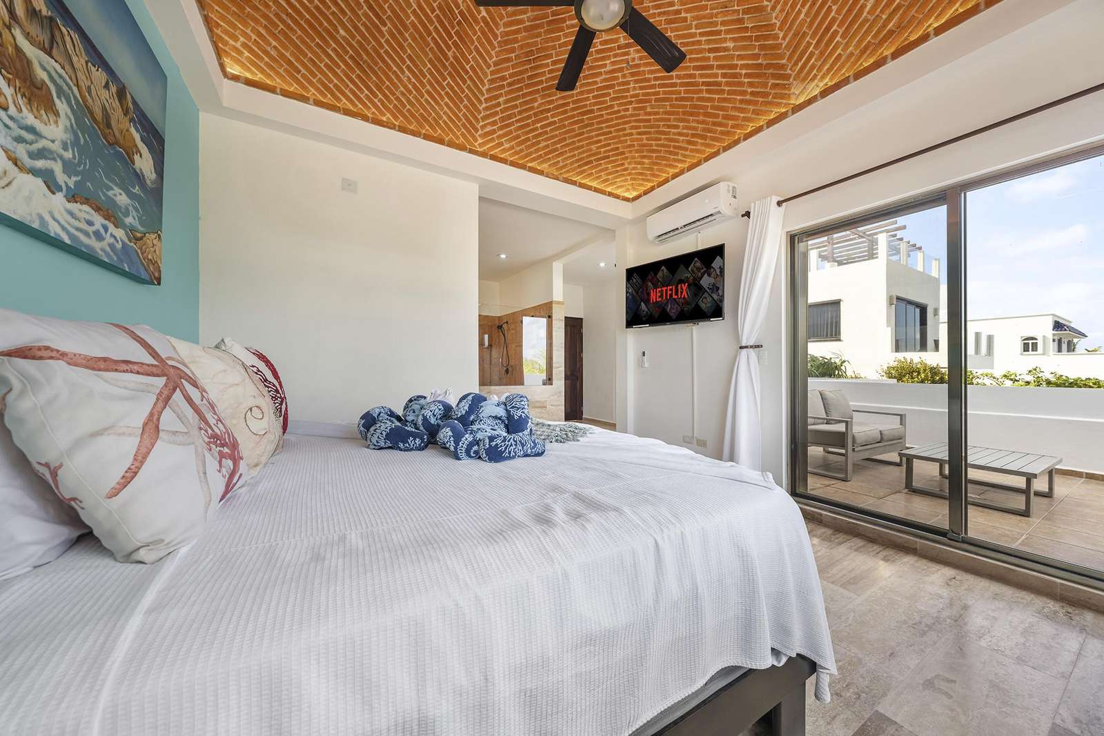 Esta espaciosa casa ofrece todo lo necesario para una escapada perfecta, incluyendo una cocina gourmet y una piscina de agua salada que recibe luz solar hasta bien entrada la tarde. Diríjase a la azotea para disfrutar de impresionantes puestas de sol y obtener lo mejor de ambos mundos. Cada habitación cuenta con una cómoda cama king-size con lujosa ropa de cama, vestidores, baños privados con ducha (el principal incluye una tina) y una terraza privada.