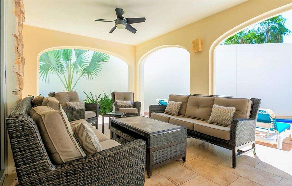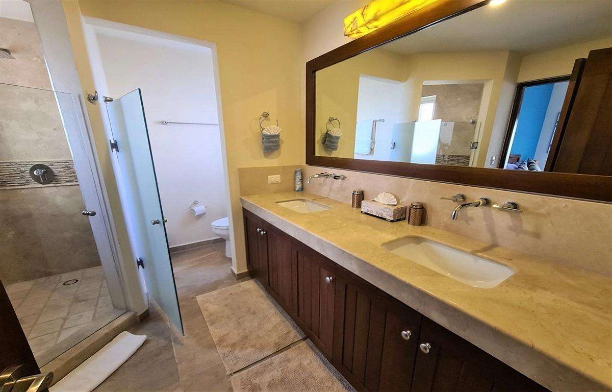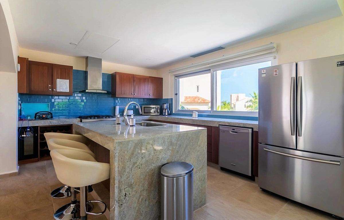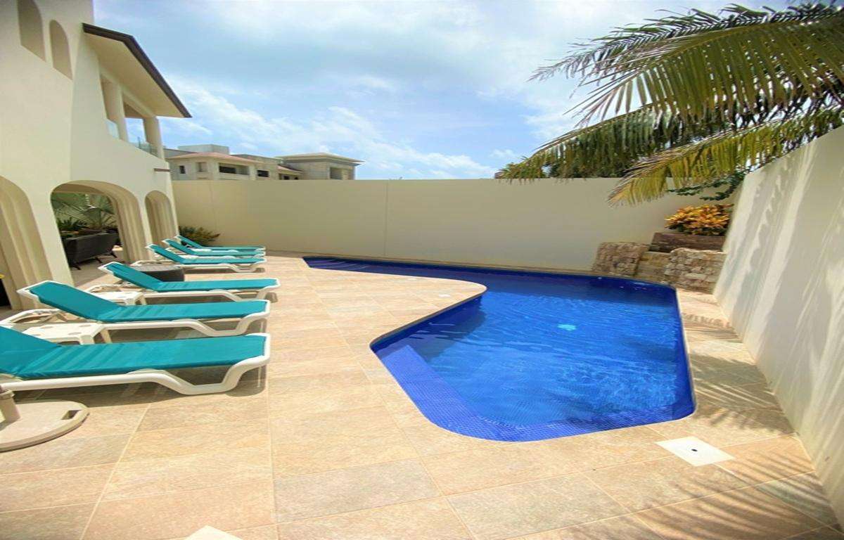 La planta baja está diseñada con una distribución abierta que incorpora un comedor, una cocina bien diseñada con una gran isla de granito, una magnífica sala de estar y acceso a la terraza de la piscina a través de unas puertas de patio de gran tamaño. Una gran piscina climatizada con cascada y una amplia terraza ofrecen mucho espacio para relajarse y divertirse. Además, en la planta baja se encuentra la primera suite king, decorada con buen gusto con una temática acuática y un baño de mármol. Bajo una gran escalera de caracol revestida con azulejos mexicanos de colores vivos se encuentra una zona de oficina para aprovechar la conexión a Internet de fibra óptica de alta velocidad.