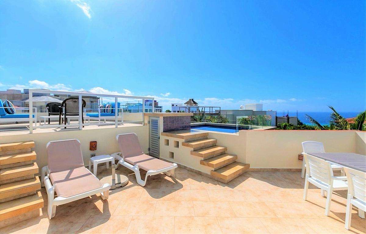 ¡El salón de la azotea es la joya de esta propiedad! Las amplias y espectaculares vistas al mar, los cómodos asientos y opciones para descansar, el comedor, la zona de preparación, el baño y la piscina climatizada lo convierten en un lugar de reunión relajante para contemplar magníficos amaneceres y atardeceres.