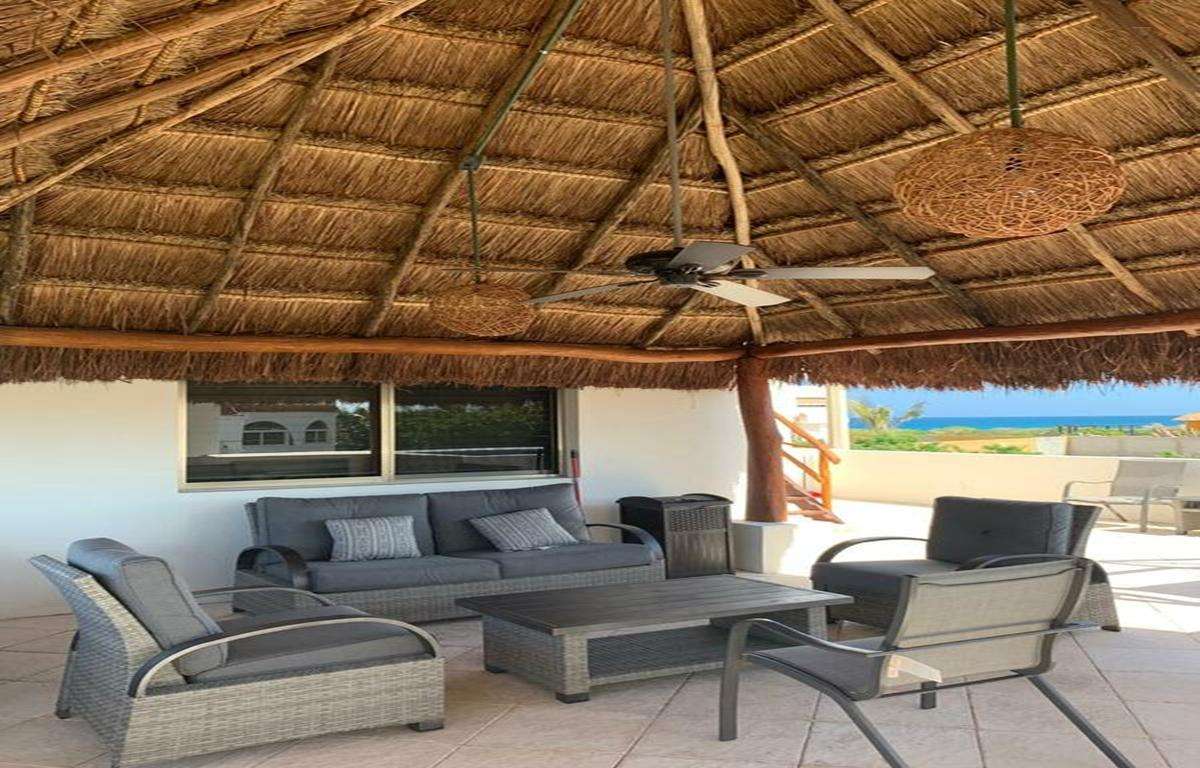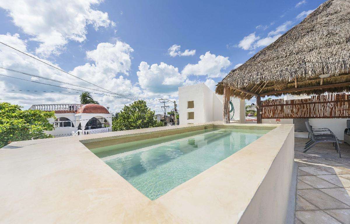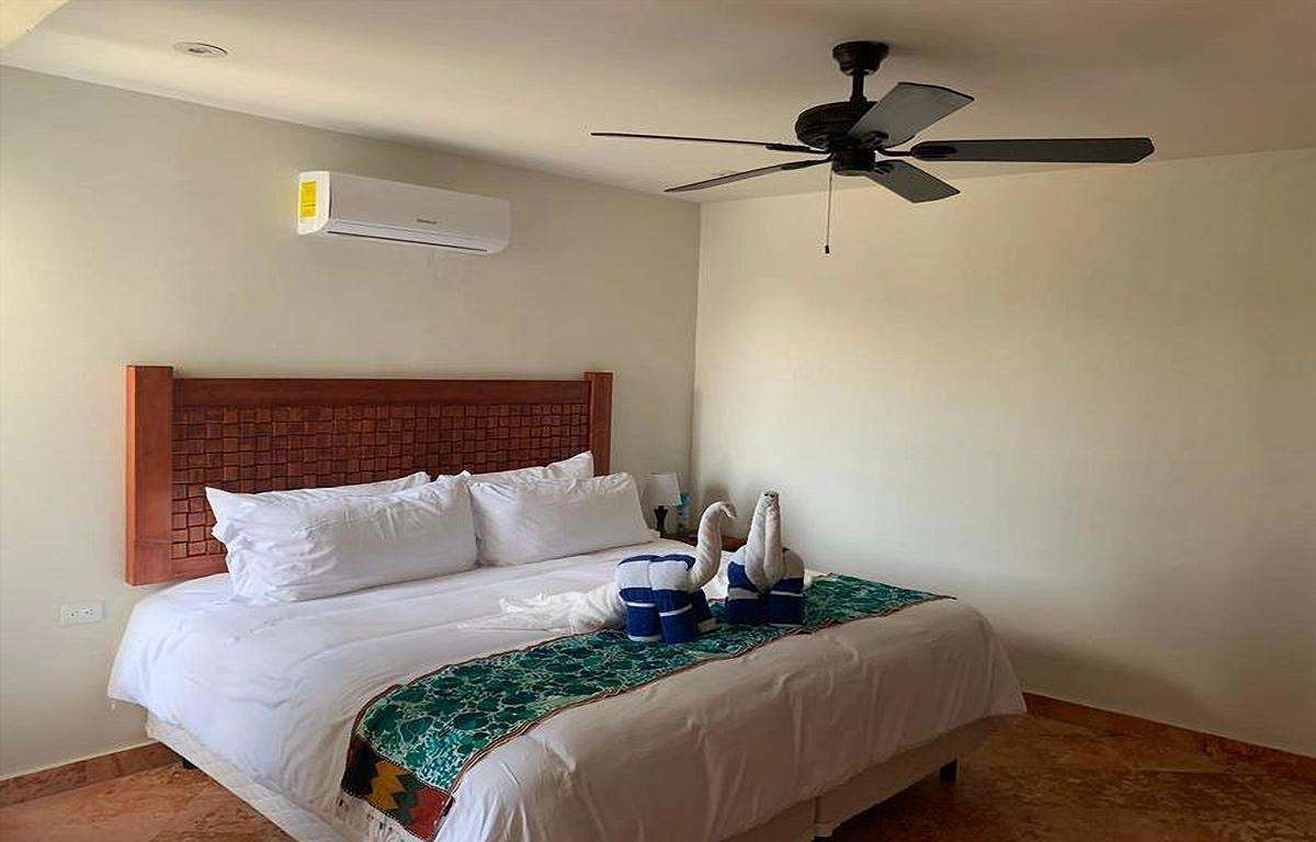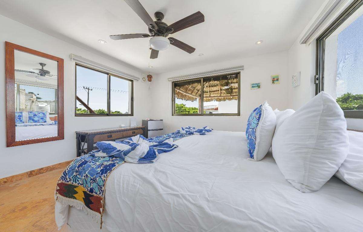 El ático cuenta con 2 dormitorios, 2 baños, sala de estar de concepto abierto, cocina y comedor, y una palapa privada en la azotea con vistas de 360 grados de la isla. La unidad está completamente equipada con toallas, sábanas, toallas de playa y todo lo que necesitará en la isla.