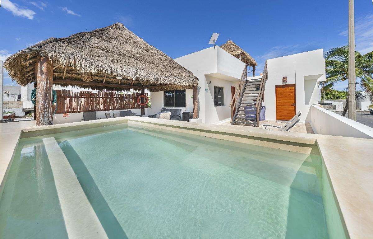 Esta nueva propiedad está ubicada en el centro de Isla Mujeres. Se encuentra a muy poca distancia en taxi o carrito de golf de todos los lugares de interés de la isla y a poca distancia a pie de varios bares y restaurantes excelentes. ¡La famosa playa del norte está a solo 10 minutos en carrito de golf!