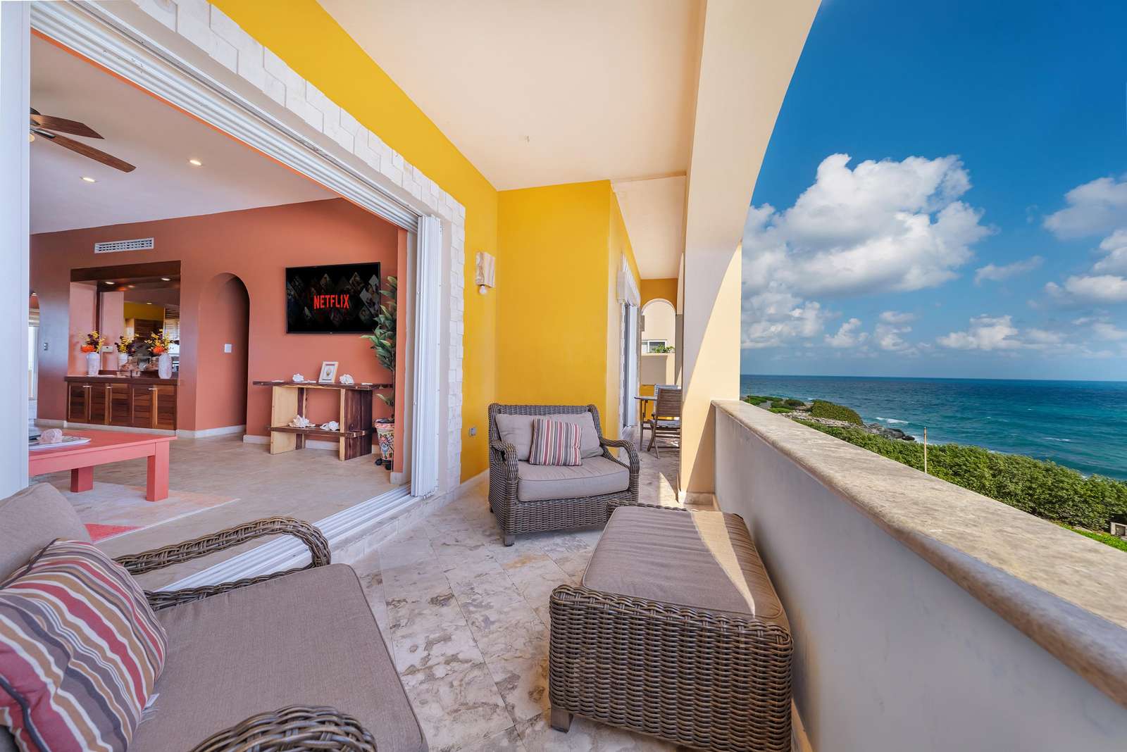 Nuestra suite ofrece las mejores vistas tanto del este como del oeste de la isla. Los visitantes se despertarán cada mañana con el agradable sonido del mar desde el dormitorio principal y podrán contemplar la puesta de sol sobre el horizonte de Cancún desde el dormitorio de invitados. Ambos lados.