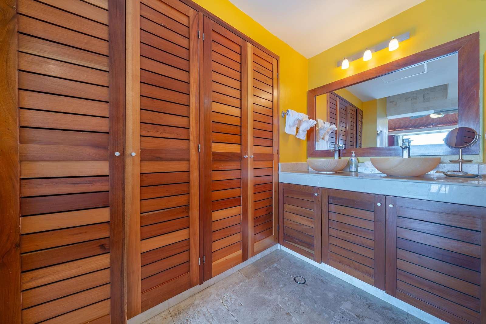 La habitación de invitados incluye dos cómodas camas dobles, balcón privado y un amplio armario. El segundo cuarto de baño completo, con una gran ducha a ras de suelo, se encuentra justo al lado, lo que proporciona una gran privacidad, lo que la convierte en una suite ideal para dos parejas o para familias con niños. El balcón también está orientado al oeste y es un lugar perfecto para ver la puesta de sol sobre la isla.