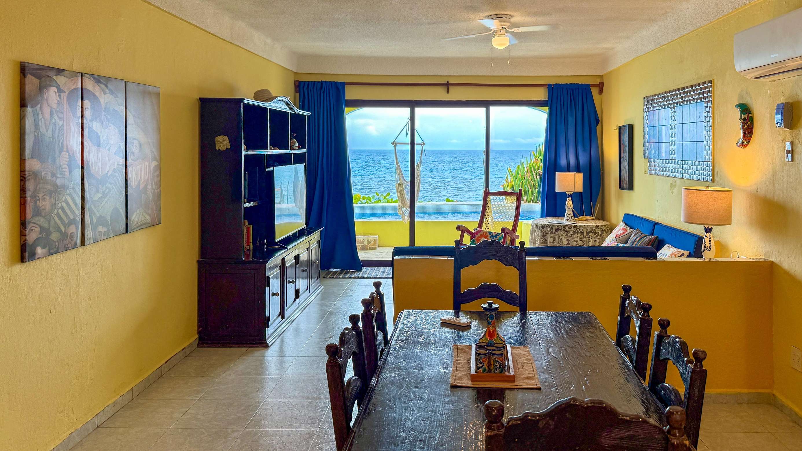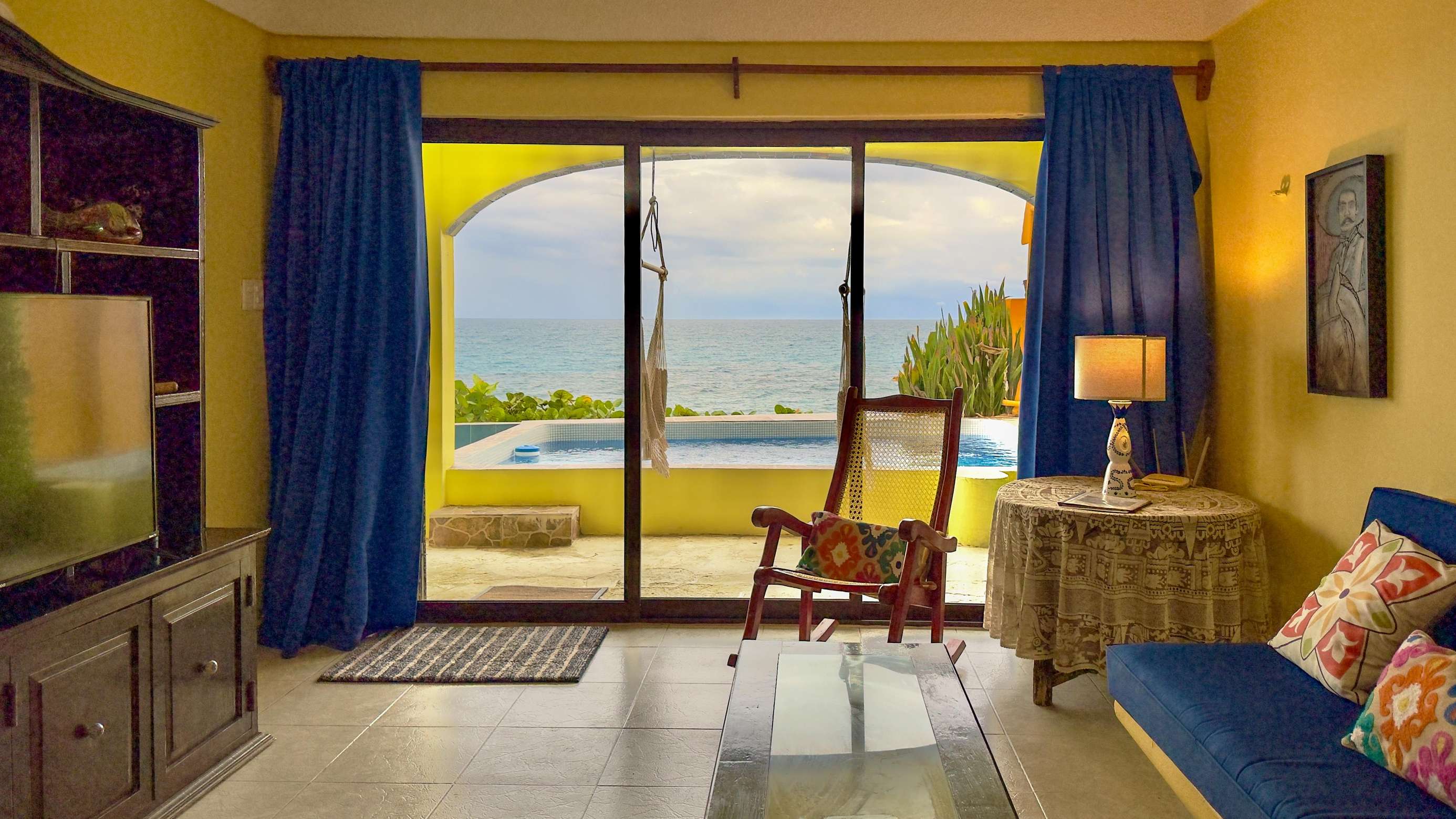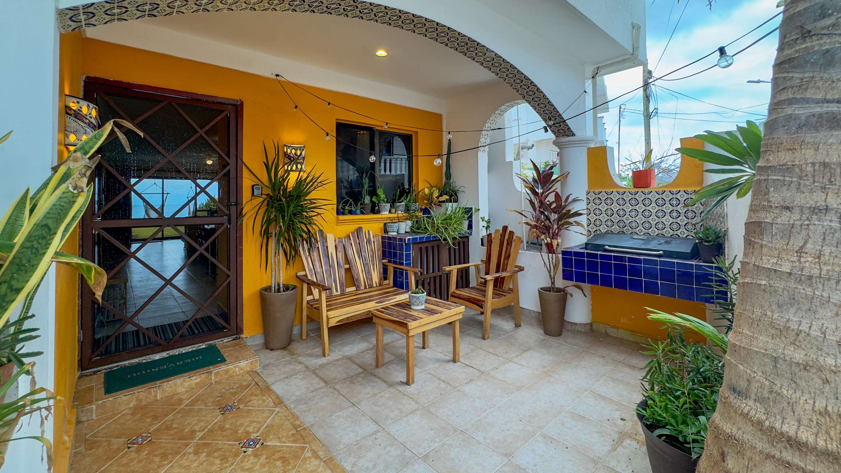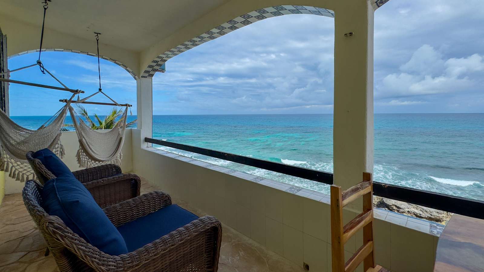 Balcón con vista al mar, perfecto para tomar café por la mañana y contemplar la puesta del sol.