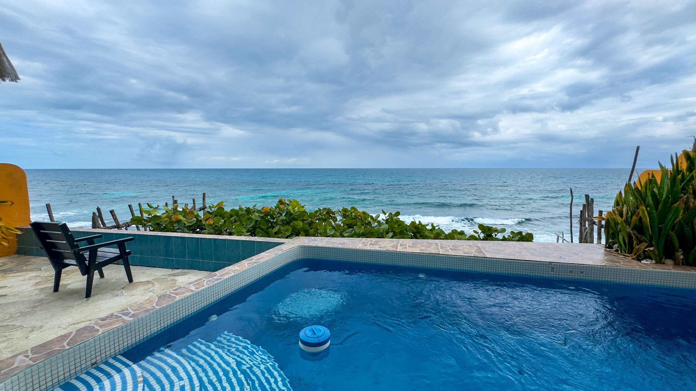 Tanto el balcón como la piscina tienen vistas al Caribe.