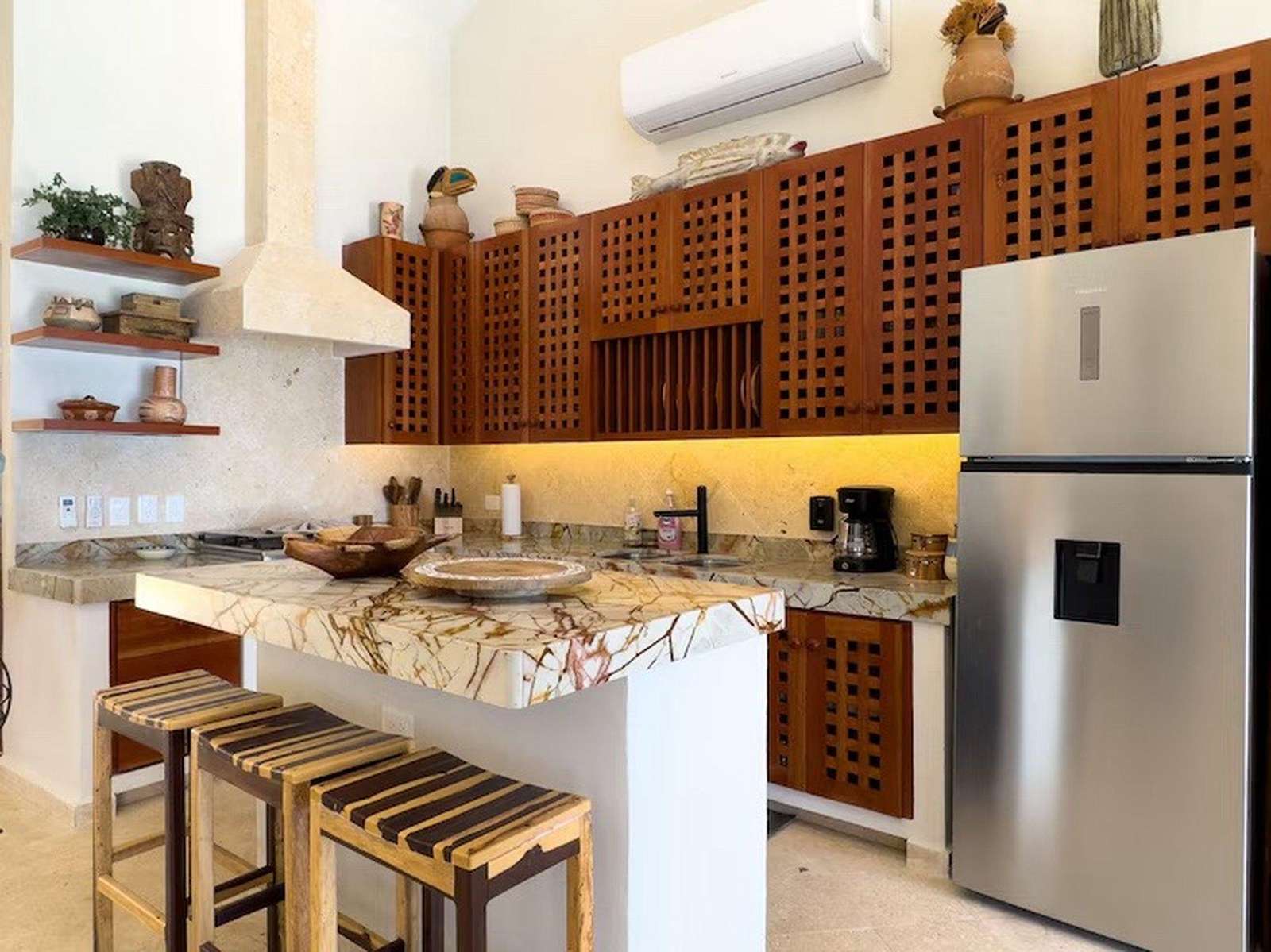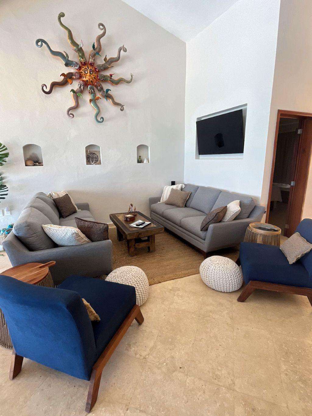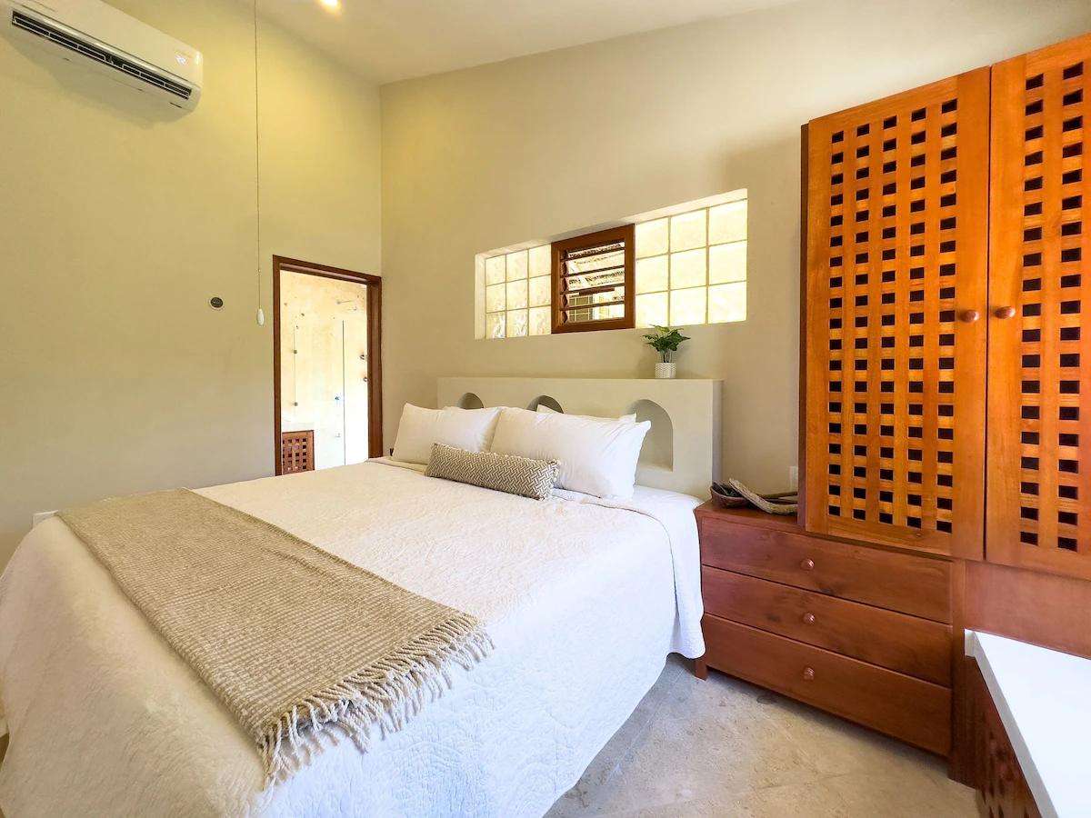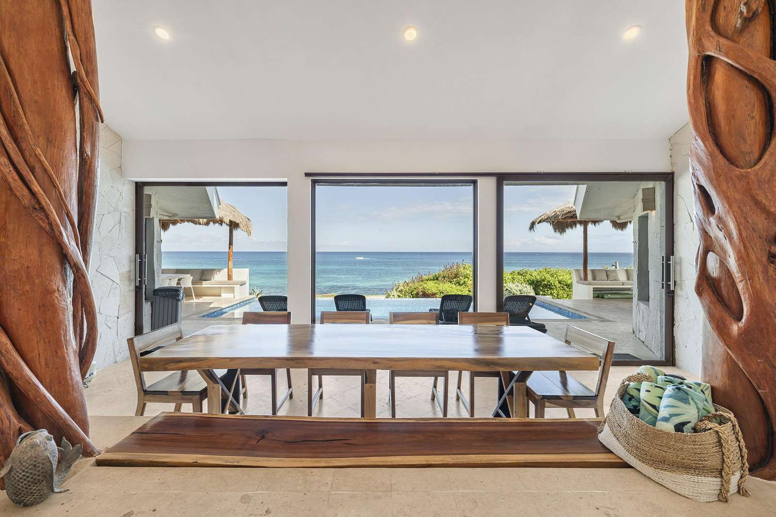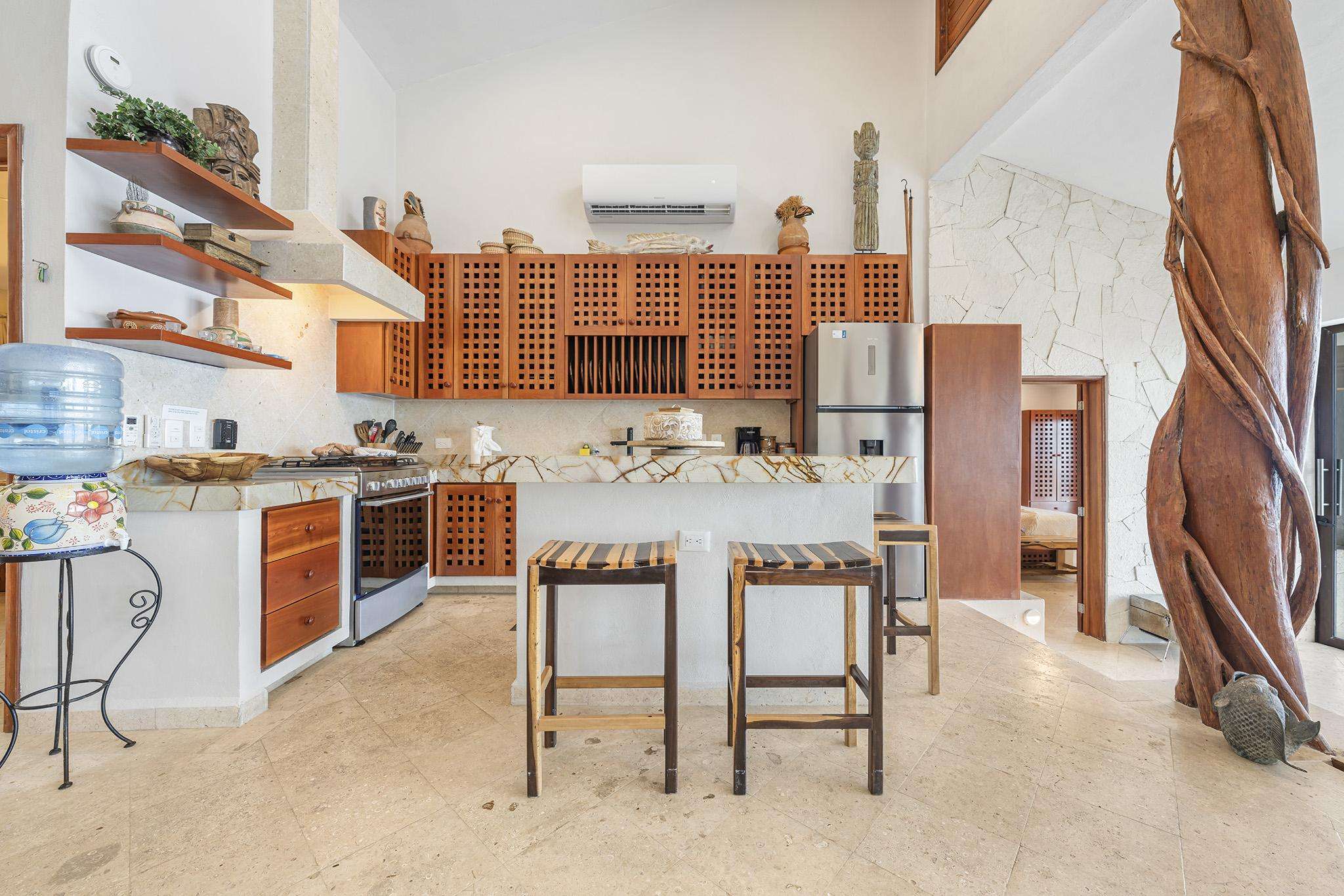 Las vistas panorámicas del Caribe, tanto desde el interior de la casa como desde la terraza de la piscina y las zonas de descanso cubiertas con palapas, le dejarán sin aliento. Nuestra casa acaba de ser completamente renovada y todas las superficies han sido sustituidas por acabados de alta gama. Cuenta con cuatro dormitorios principales, cada uno con baño privado y cama king size.