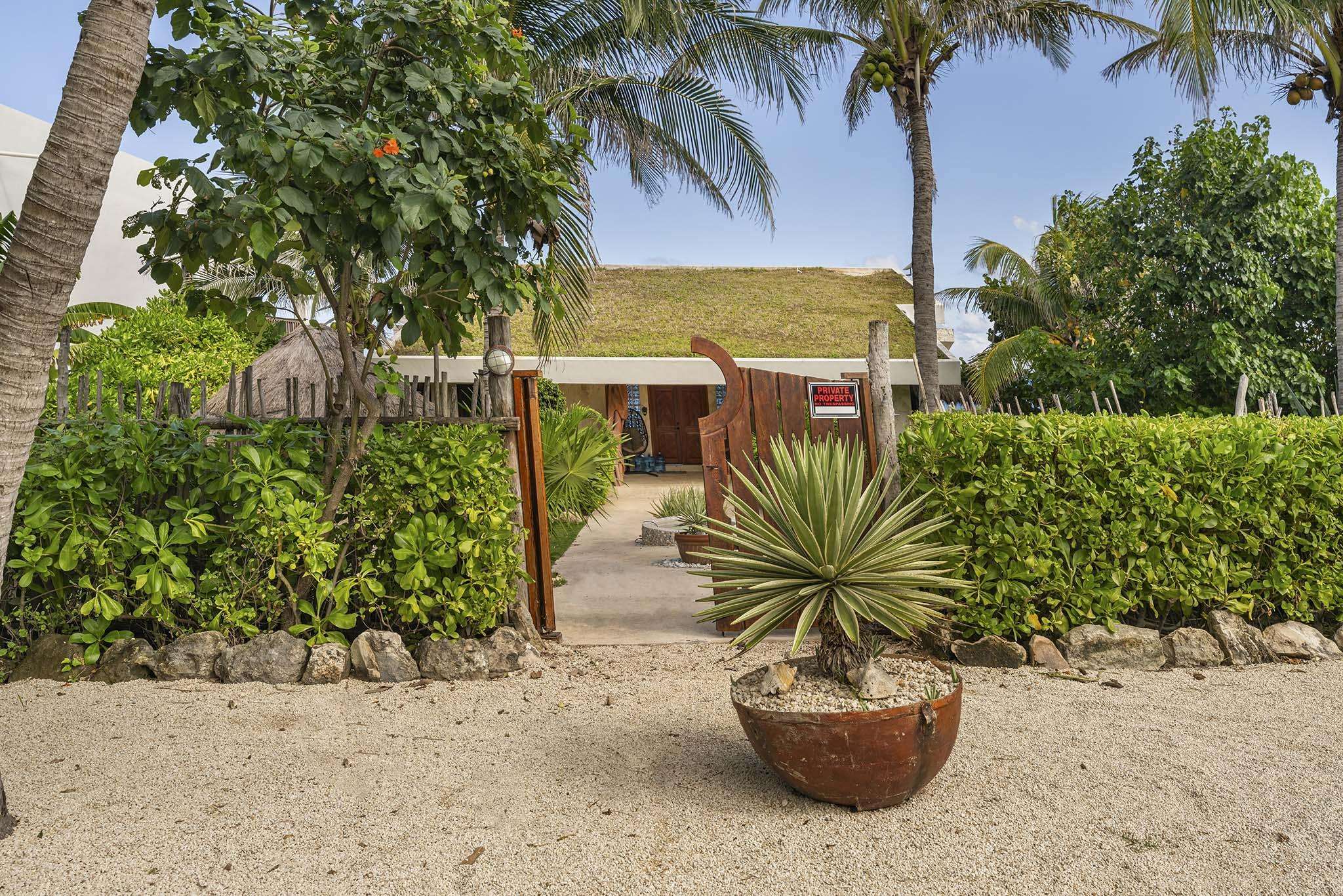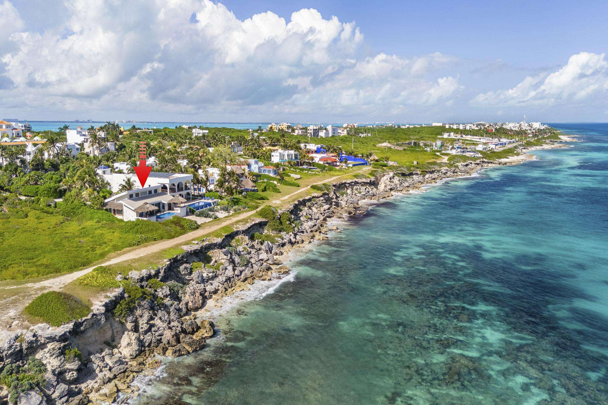 Casa Toloc es una increíble vivienda situada directamente en la costa del mar Caribe, cerca del extremo sur de Isla Mujeres (cerca del Acantilado del Amanecer). Casa Toloc, a menudo conocida como "la casa del techo de paja", ofrece un entorno verdaderamente único. La parte de la vivienda que da al mar ofrece unas vistas espectaculares del océano y cuenta con una piscina climatizada en los meses de invierno (27-29 °C). La parte que da al jardín ofrece la serenidad de un jardín selvático.