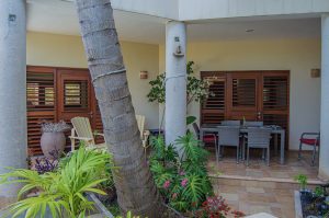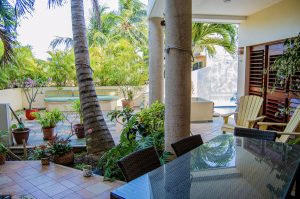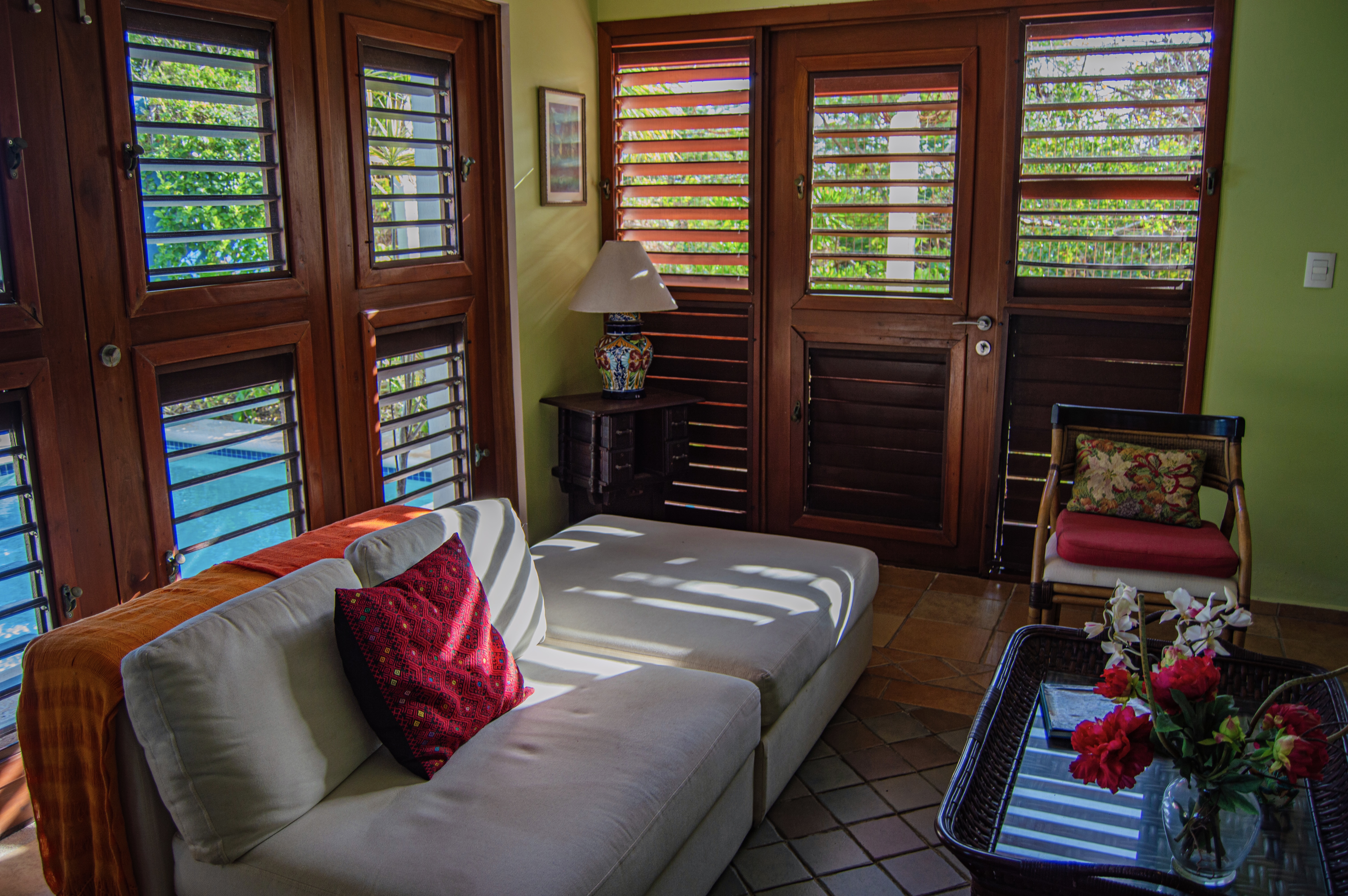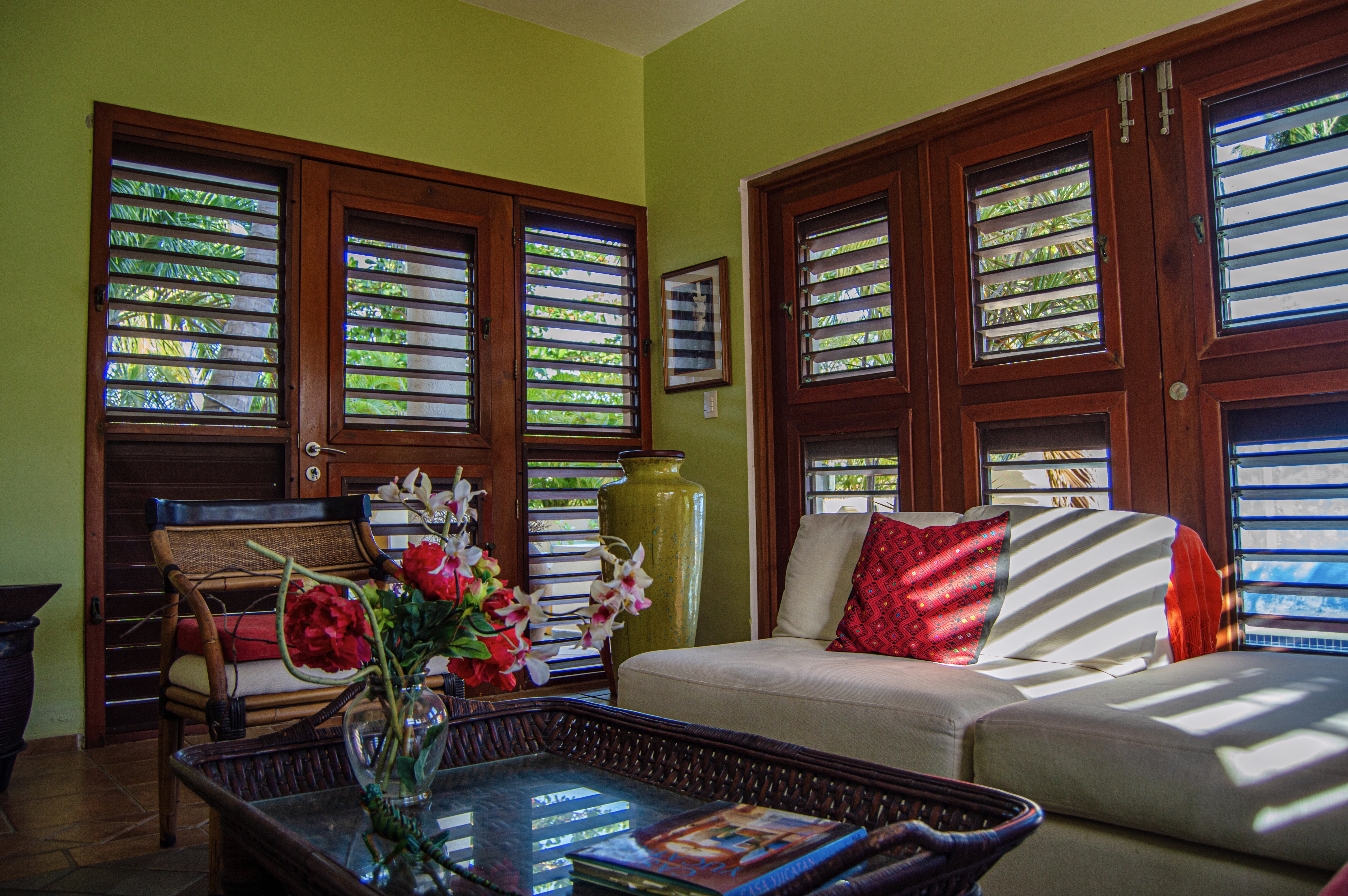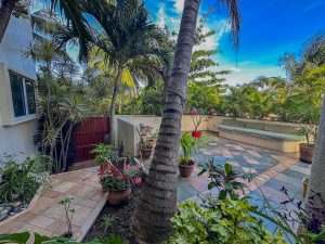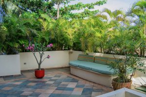 The rooftop lounge is the crown jewel of the home, offering partial sea views and gentle trade winds, while the shaded garden patios below offer quiet corners to read, nap, or gather with friends.