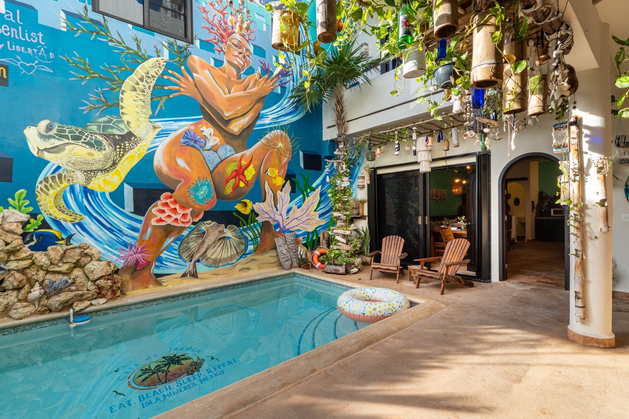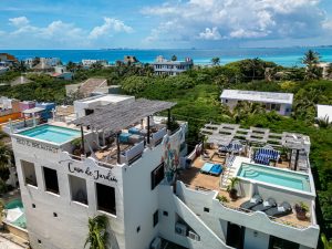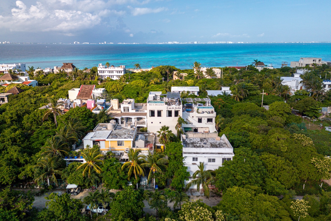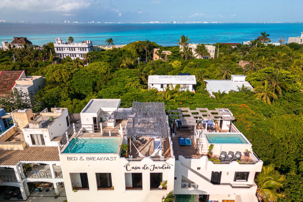 A rare find on Isla Mujeres, La Casa de Jardín offers a beautifully curated, turnkey hospitality business spread across two generous lots—an intimate boutique retreat with thoughtful design, lush landscaping, and three pools woven throughout the spaces.