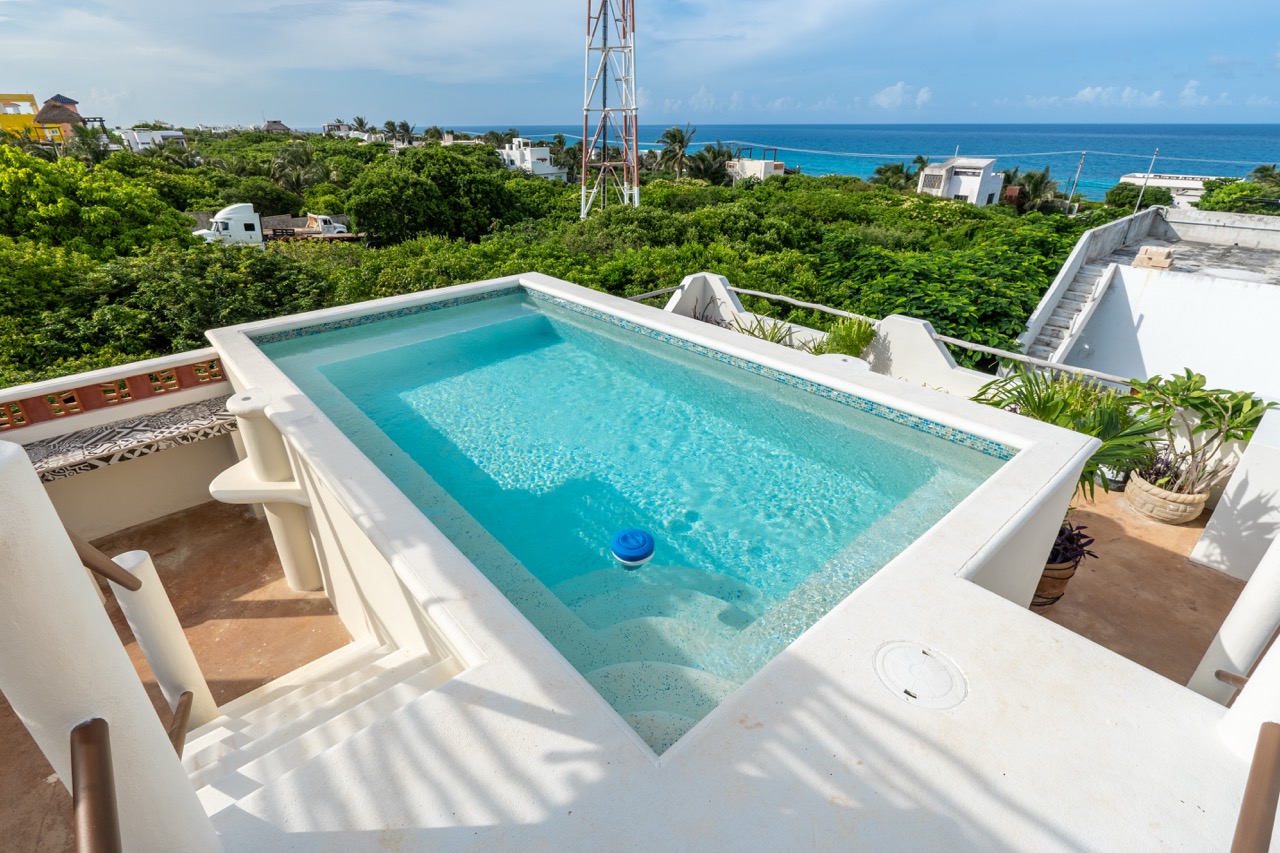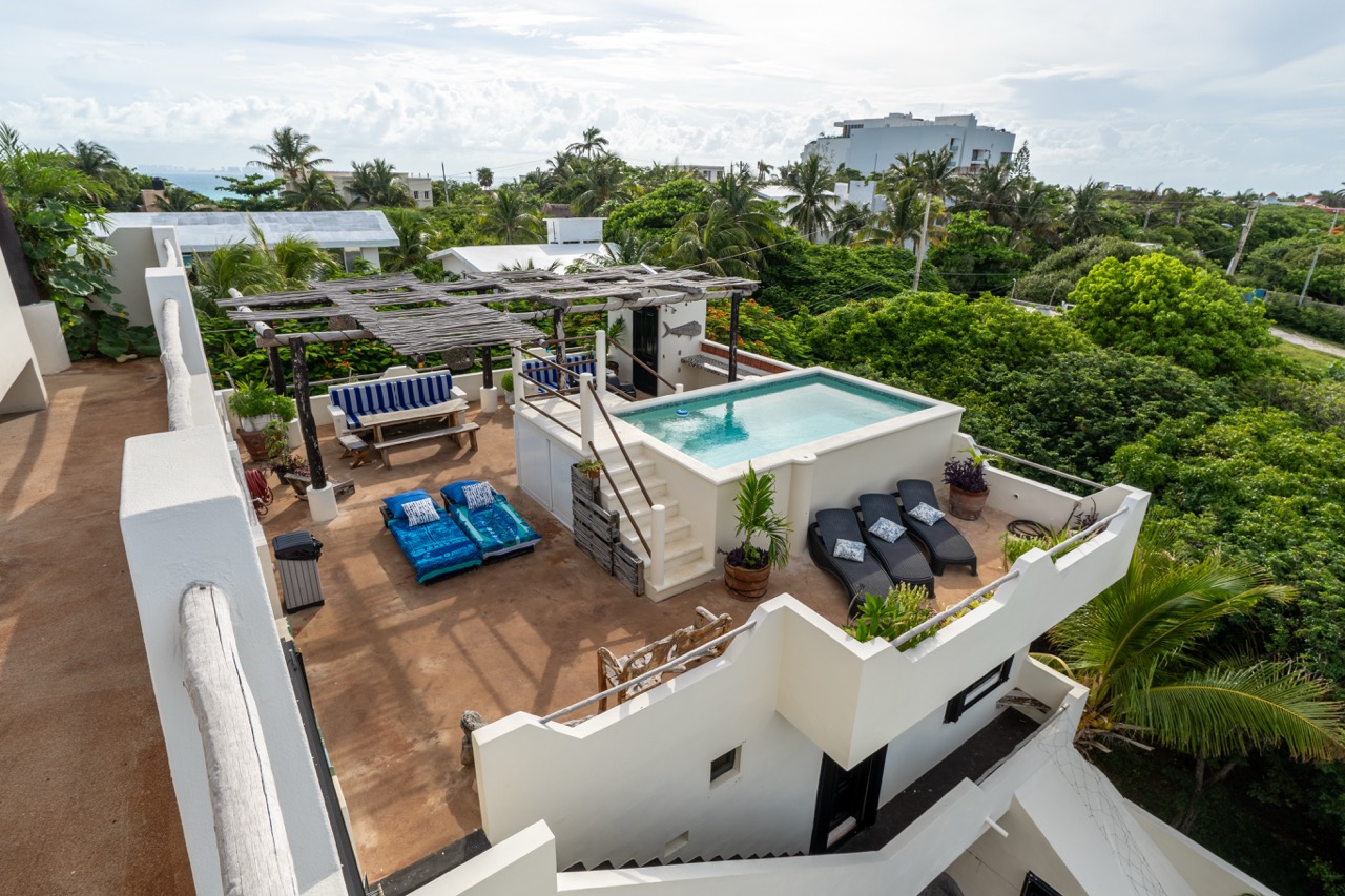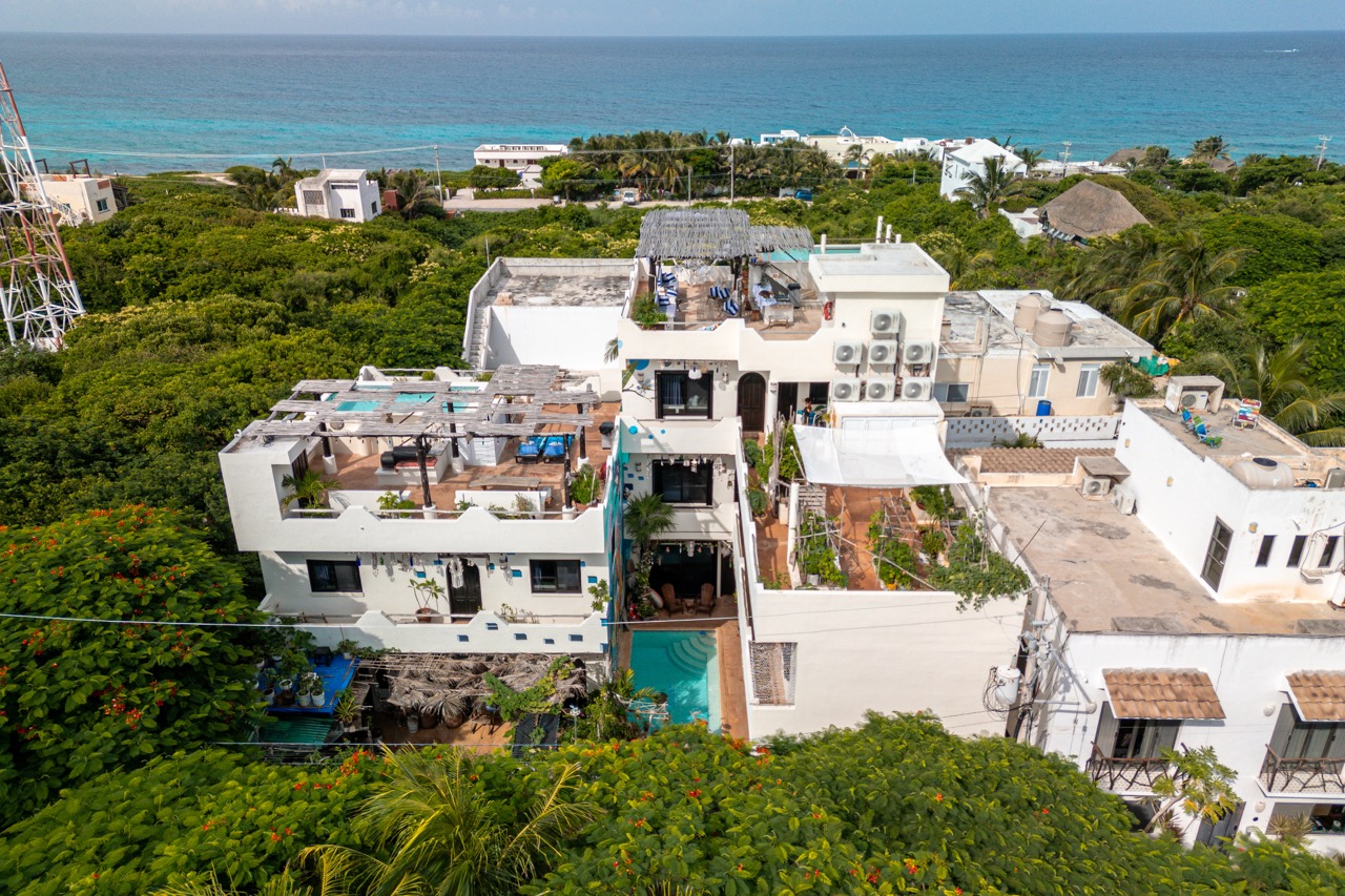 A rare find on Isla Mujeres, La Casa de Jardín offers a beautifully curated, turnkey hospitality business spread across two generous lots—an intimate boutique retreat with thoughtful design, lush landscaping, and three pools woven throughout the spaces.