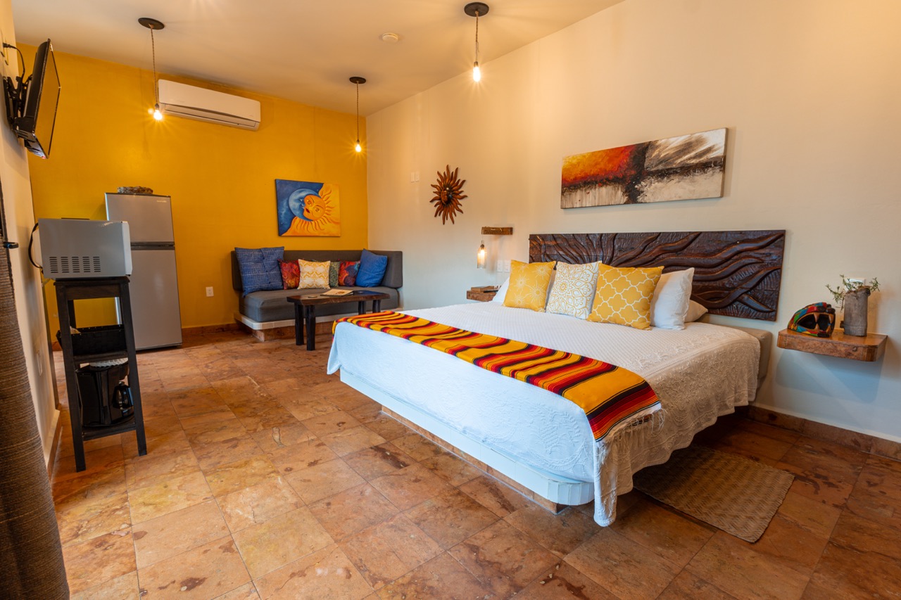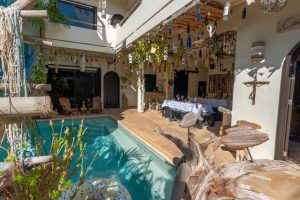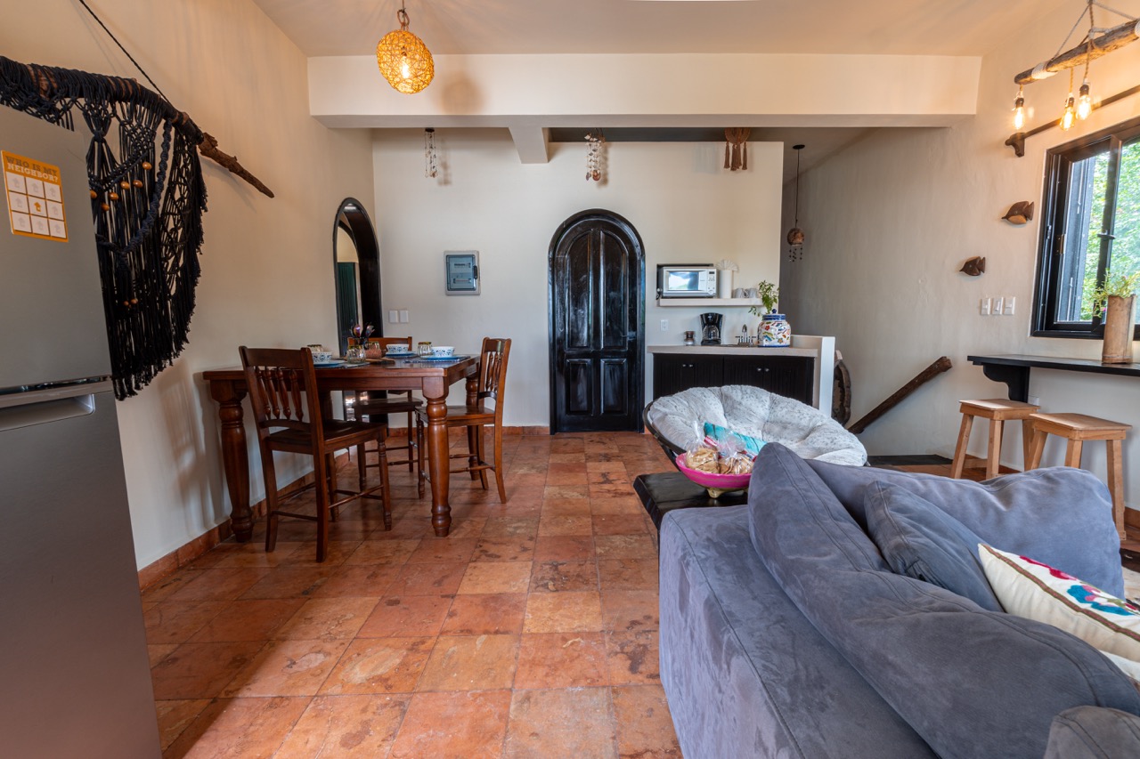 The main complex features six uniquely styled rental suites, each with its own personality, blending handcrafted details, tropical textures, and indoor–outdoor living. The ambiance is warm, artistic, and instantly relaxing—exactly the kind of place guests remember and return to.