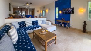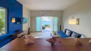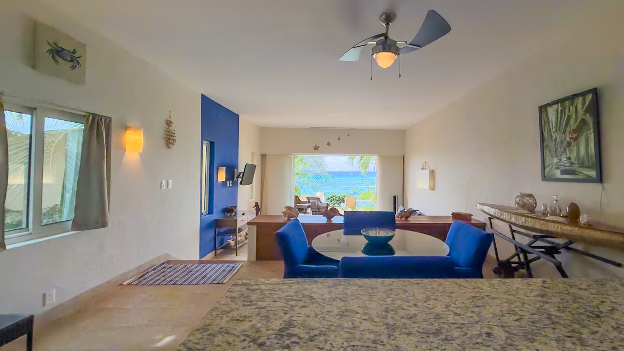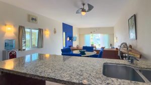 Experience comfort, style, and panoramic ocean views at Sotavento 16. This beautifully designed condominium features an open floor plan with a spacious living and dining area, one private bedroom, a fully equipped kitchen, and a tiled bathroom with a walk-in shower. The private walkout patio provides spectacular views of the Caribbean Sea, perfect for morning coffee or evening relaxation.